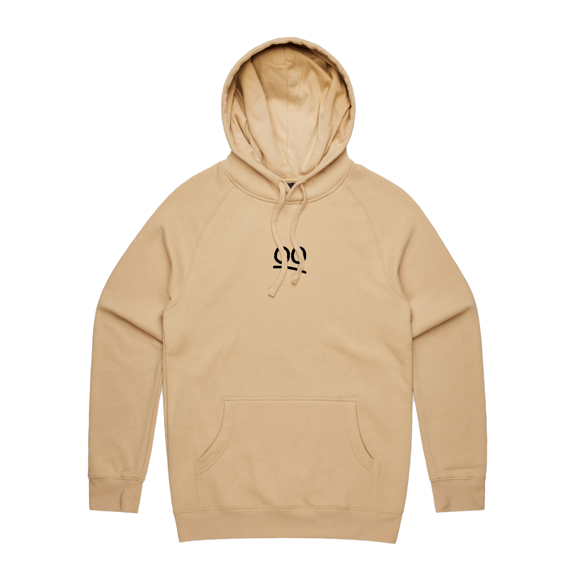 Sand hoodie featuring an 'Eyes' front print, 'Moodie' back print and kangaroo pockets.